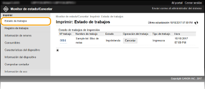 Puede eliminar un trabajo haciendo clic en [Cancelar].