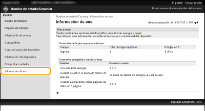 Podrá comprobar información como puede ser el número de impresiones mensuales y la cantidad de energía consumida.