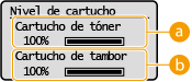 La cantidad restante en el cartucho de tóner o en el cartucho de tambor mostrada únicamente deberá utilizarse como guía y podría diferir de la cantidad real. Otros componentes internos podrían llegar al final de su vida útil antes de que la cantidad restante en el cartucho de tóner o en el cartucho de tambor se agote. |