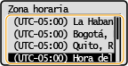Configure <Zona horaria> antes de configurar la fecha y la hora actuales. Si la opción <Zona horaria> se modifica más tarde, la fecha y la hora actuales también se modificarán. |