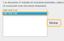 Seleccione una dirección IP y haga clic en [Eliminar].
