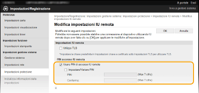 Selezionare la casella di controllo [Usare PIN di accesso IU remota] e impostare il PIN.