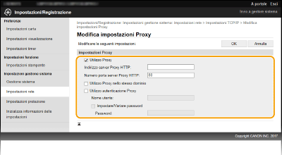 Selezionare la casella di controllo [Utilizzo Proxy] e specificare le impostazioni richieste.