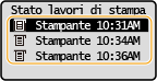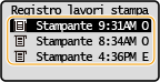 Selezionare il documento di cui si desidera verificare il registro.<OK> viene visualizzato quando un documento è stato stampato correttamente e <Errore> viene visualizzato quando un documento non viene stampato perché è stato cancellato o si è verificato un errore.