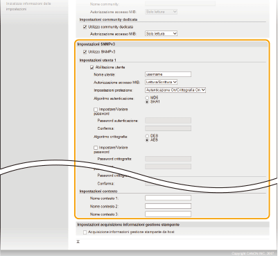 Specificare le impostazioni SNMPv3.