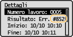 Se si verifica un errore, ad esempio quando la stampa non riesce, il codice di errore corrispondente viene visualizzato nella schermata del registro dei lavori come numero a tre cifre. Verificare quanto segue per individuare cause e soluzioni per ciascun codice di errore. Per maggiori dettagli sulla schermata del registro dei lavori, vedere