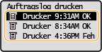 Wenn <Auftragslog anzeigen> auf <Aus> gesetzt ist, können Sie die Drucklogs nicht prüfen. <Auftragslog anzeigen>