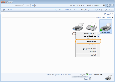 انقر بزر الماوس الأيمن على أيقونة برنامج تشغيل الطابعة هذا الجهاز ومن ثم انقر على [خصائص الطابعة] أو [خصائص].