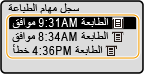 عندما يتم ضبط <عرض سجل المهمة> على <إيقاف>، فإنه لا يمكنك التحقق من سجلات الطباعة. <عرض سجل المهمة>