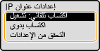 تحقق من أن <IP تلقائي> معين إلى <تشغيل>.