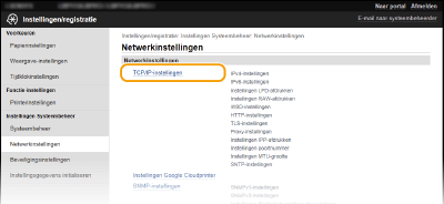 Klik op [Instellingen/registratie] op de portaalpagina.