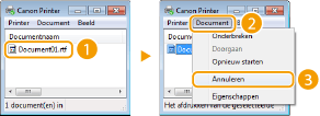 Annuleren vanuit een programmaIn sommige programma's verschijnt het onderstaande scherm. U kunt het afdrukken annuleren door te klikken op [Annuleren].