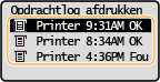 selecteer het document waarvan u het logboek wilt controleren.<OK> geeft aan dat een document zonder problemen is afgedrukt en <Fout> betekent dat een document niet is afgedrukt omdat de bewerking is geannuleerd of omdat er een fout is opgetreden.