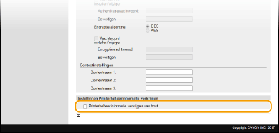 Schakel het selectievakje in om via SNMP de gegevens voor printerbeheer van het apparaat te bewaken. Als u geen printerbeheerinformatie wilt bewaken, schakelt u het selectievakje uit.