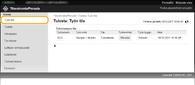 Jos kirjaudut sisään järjestelmänvalvojan tilassa, kaikki parhaillaan tulostettavat tai tulostusta odottavat asiakirjat luetellaan.