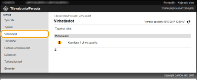 Kun tapahtuu virhe, tämä sivu näytetään, kun napsautat portaalisivulla (pääsivulla) kohdan [Virhetiedot] alla näkyvää viestiä.