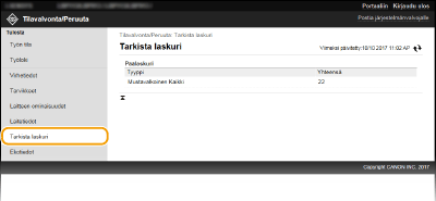 Tulostuksen kokonaislaskurin tarkistaminen