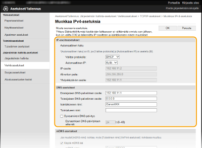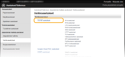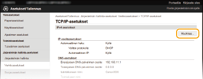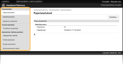 Voit muuttaa laitteen eri asetuksia Etäkäyttöliittymän avulla. Useimmat asetukset voidaan määrittää myös laitteessa, mutta jotkin asetukset voidaan määrittää vain Etäkäyttöliittymällä. Tässä osiossa kuvataan laitteiden asetusten muuttamisen peruskulku Etäkäyttöliittymää käytettäessä.