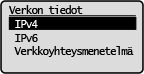 Näyttää verkkoasetukset, kuten laitteen IP-osoitteen, sekä tilan, kuten langattoman tiedonsiirron tilan.