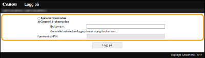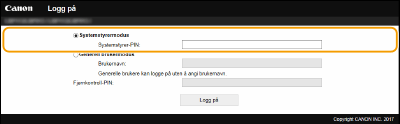 Skriv inn riktig PIN-kode i [Systemstyrer-PIN] for å logge på i systemstyrermodus.