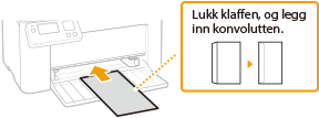 Legg i konvolutter av typen Monarch, Nr. 10 (COM10), DL eller C5 i stående retning (med kortsiden mot maskinen) med forsiden (siden uten limkant) vendt opp. Du kan ikke skrive ut på baksiden av konvolutter.