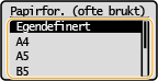 Hvis papiret som er lagt i ikke vises, velger du <Andre størrelser>.