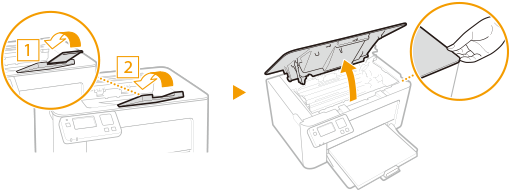 Lukk papirstopperen, og åpne deretter tonerdekselet.