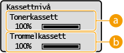 Viser mengden toner igjen i trommelkassettene.