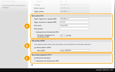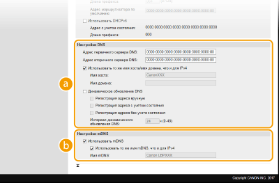 DNS (служба доменных имен) представляет собой службу, выполняющую разрешение имени, которое связывает имя узла (или домена) с IP-адресом. При необходимости настройте параметры DNS, mDNS или DHCP. Обратите внимание, что процедуры настройки DNS для IPv4 и IPv6 могут отличаться.