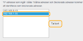 Välj IP-adress och klicka på [Ta bort].
