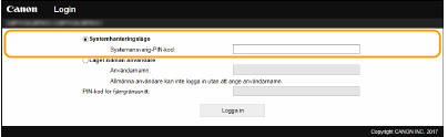 Ange rätt PIN-kod i [Systemansvarig-PIN-kod] för att logga in i systemhanteringsläge.