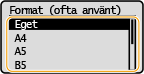 Välj pappersformat.