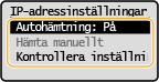 Välj <Autohämtning> och ange både <Välj protokoll> och <Auto-IP> till <Av>.