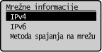 Prikazuje mrežne postavke, npr. IP adresu uređaja, i status, npr. stanje komunikacije putem bežičnog LAN-a.
