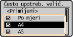 Provjerite jesu li označeni samo potvrdni okviri formata papira koje često koristite.