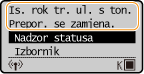 Pritisnite i držite tipku za povratak. Na zaslonu <Ispis izvješća> ispišite izvješće statusa o potrošnom materijalu da biste saznali naziv spremnika. Ispis izvješća i popisa