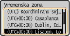 Prije postavljanja trenutnog datuma i vremena odredite postavku <Vremenska zona>. Ako promijenite postavku <Vremenska zona>, u skladu s njome promijenit će se i trenutni datum i vrijeme.