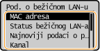 <Status bežičnog LAN-a> i <Najnoviji podaci o pogreškama> moguće je pogledati i putem zaslona <Nadzor statusa>.