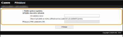 Vyberte možnost [Režim správce systému] nebo [Režim obecného uživatele].