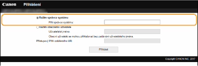 Zadejte příslušný kód PIN do možnosti [PIN správce systému] a přihlaste se do režimu správce systému.