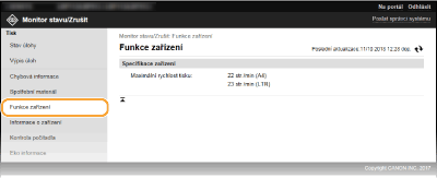 Pokud se přihlásíte v režimu správce systému, budou v seznamu uvedeny všechny právě tištěné dokumenty i dokumenty čekající na tisk.