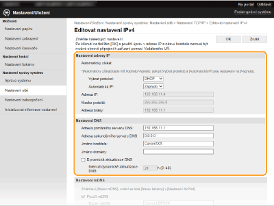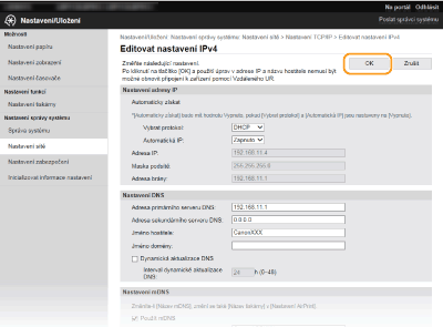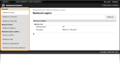 Prostřednictvím Vzdáleného uživatelského rozhraní můžete změnit různá nastavení zařízení. Většinu nastavení je možné zadat i prostřednictvím zařízení, existuje však několik nastavení, která lze zadat pouze prostřednictvím Vzdáleného uživatelského rozhraní. V této části je popsán základní postup, jak změnit nastavení zařízení pomocí Vzdáleného uživatelského rozhraní.