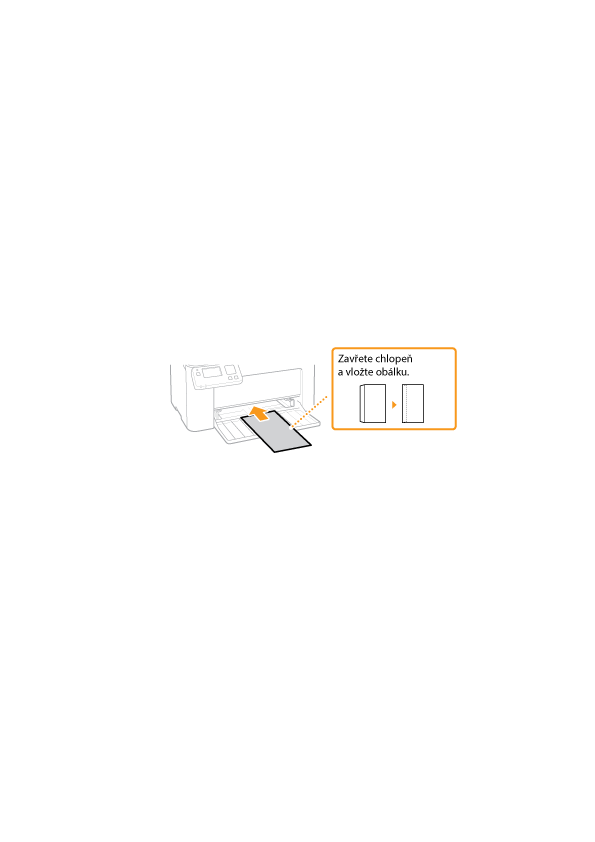Obálky Monarch, č. 10 (COM10), DL či C5 vložte v orientaci na výšku (kratší stranou směrem k zařízení) stranou bez lepidla (přední stranou) nahoru. Nelze tisknout na opačnou stranu obálek.