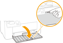 زمانی که کشوی کاغذ از قبل باز است و درپوش کاغذ پایین آورده شده است، درپوش کاغذ را بردارید.