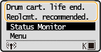 هنگامی که مقدار باقیمانده کارتریج درام کاهش می یابد، دستگاه یک پیام نمایش می دهد. توجه داشته باشید اگر به چاپ ادامه دهید بدون اینکه این مشکل را حل کرده باشید ممکن است کیفیت چاپ تحت تأثیر قرار بگیرد. می توانید مقدار باقیمانده کارتریج درام را در نمایشگر بررسی کنید (