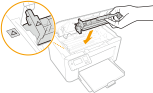 کارتریج تونر را تکان ندهید یا کج نکنید. همینطور به کارتریج تونر ضربه نزنید مثلاً آن را به جایی نزنید. اینکار می تواند موجب نشتی تونر باقیمانده در کارتریج تونر شود. به آرامی کارتریج تونر را با همان زاویه شکاف خارج کنید.