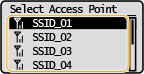 می توانید روترهای بی سیم (یا نقاط دستیابی) موجود برای اتصال را جستجو کنید و یکی از آنها را از نمایشگر دستگاه انتخاب کنید. برای کلید شبکه، یک کلید WEP یا PSK وارد کنید. قبل از انتخاب روتر بی سیم، اطلاعات تنظیم لازم از جمله SSID و کلید شبکه را بررسی و یادداشت کنید (