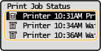 בחר במסמך שברצונך לבדוק את היומן שלו.<OK> מוצג כאשר מסמך הודפס בהצלחה ו-<Error> מוצג כאשר הדפסת המסמך נכשלה בגלל שהיא בוטלה או שאירעה שגיאה כלשהי.