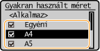 Győződjön meg arról, hogy csak a gyakran használt papírméretek jelölőnégyzete van bejelölve.
