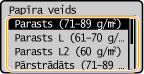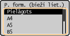 Ja ievietotā papīra formāts netiek rādīts, izvēlieties <Citi izmēri>.